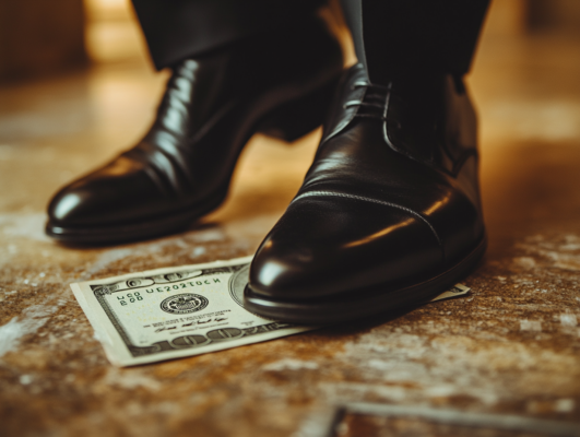 Every hand remained raised. Without pausing, I dropped the bill on the floor and ground it beneath my shoe, pressing it hard into the ground. Then, I picked it up, now creased, crumpled, and dirty.